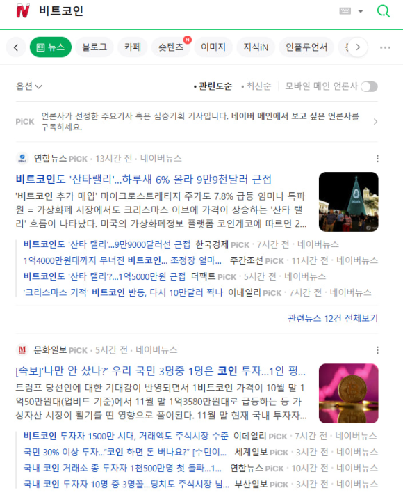 비트코인도 산타랠리에 동참하며 하루새 높은 상승을 하는 등
