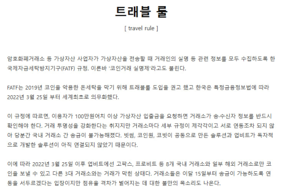 우선 해외거래소를 이용하시기 전에는 트래블 룰을 꼭 아셔야하는데요.